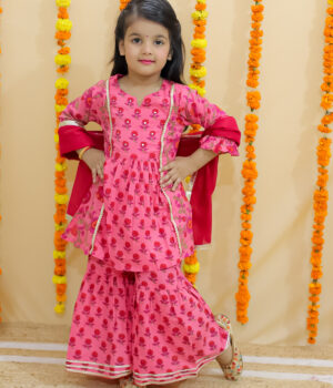 Alia Anarkali Flair Kurti Set with Dupatta – Pink